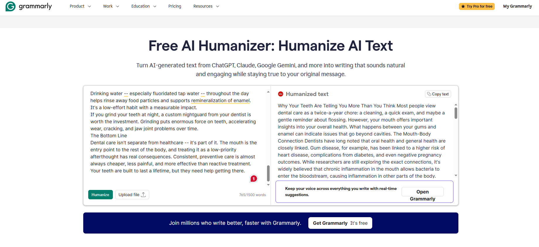 While Grammarly's AI humanizer isn't its primary function, for healthcare editorial teams that currently use Grammarly to check the grammar and style of their content, the humanizer is an additional benefit to an existing workflow.
