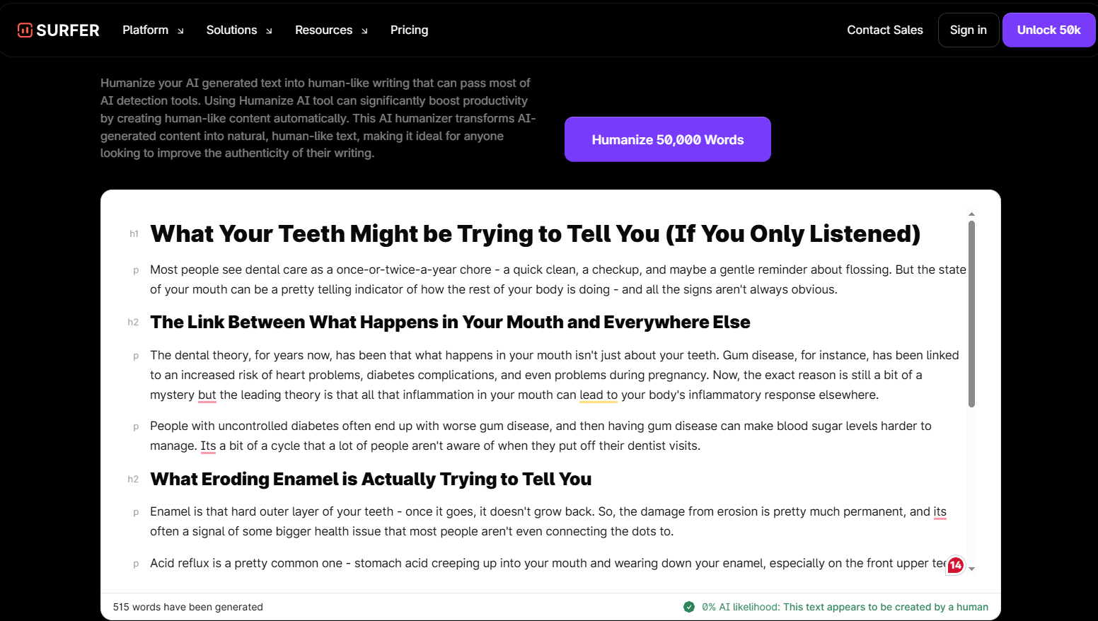 5. Surfer SEO Humanizer: Best for Long-Form Health Content