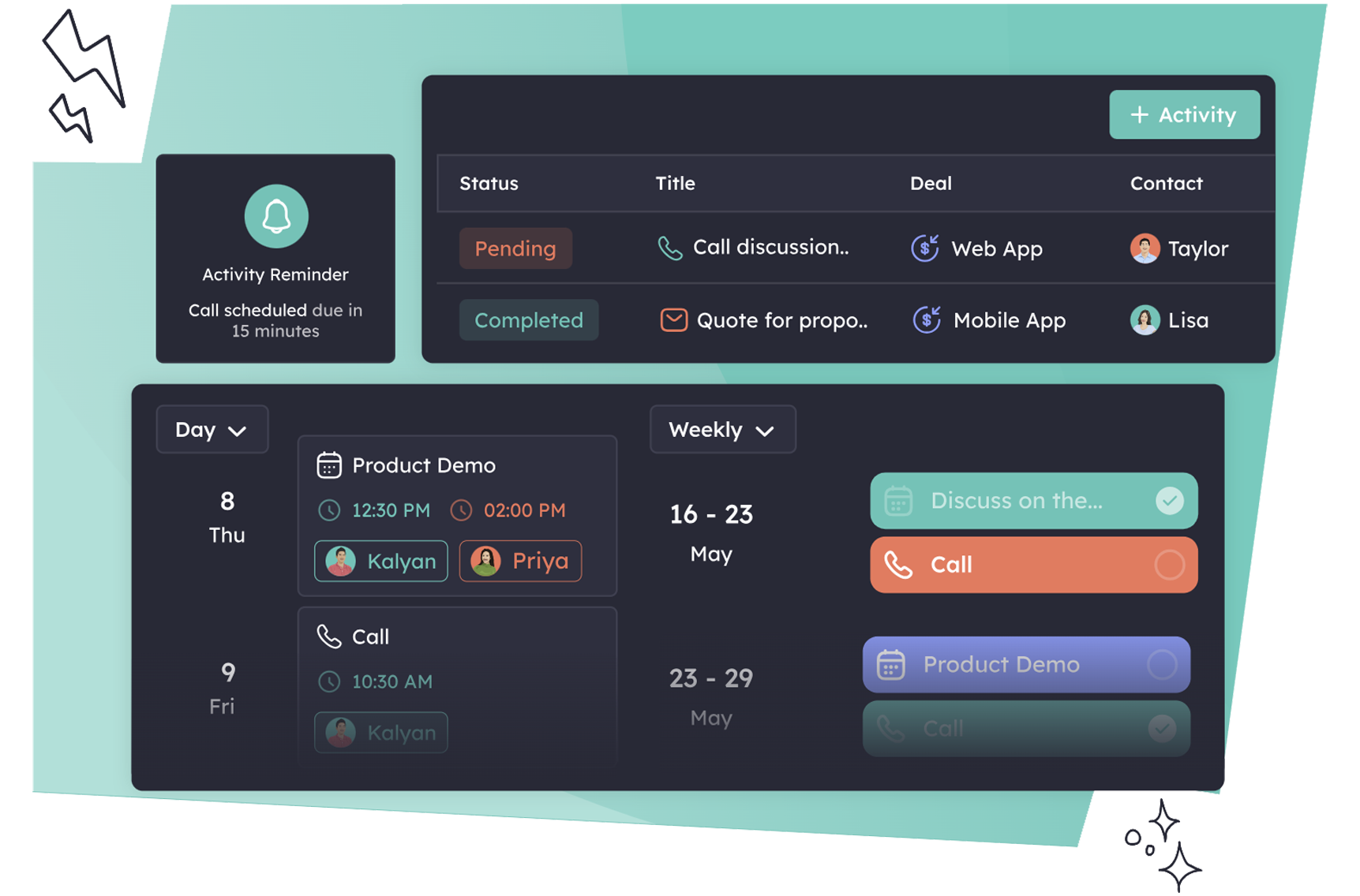 Stay organized with smart reminders for calls, meetings, and follow-ups that keep deals moving forward.
