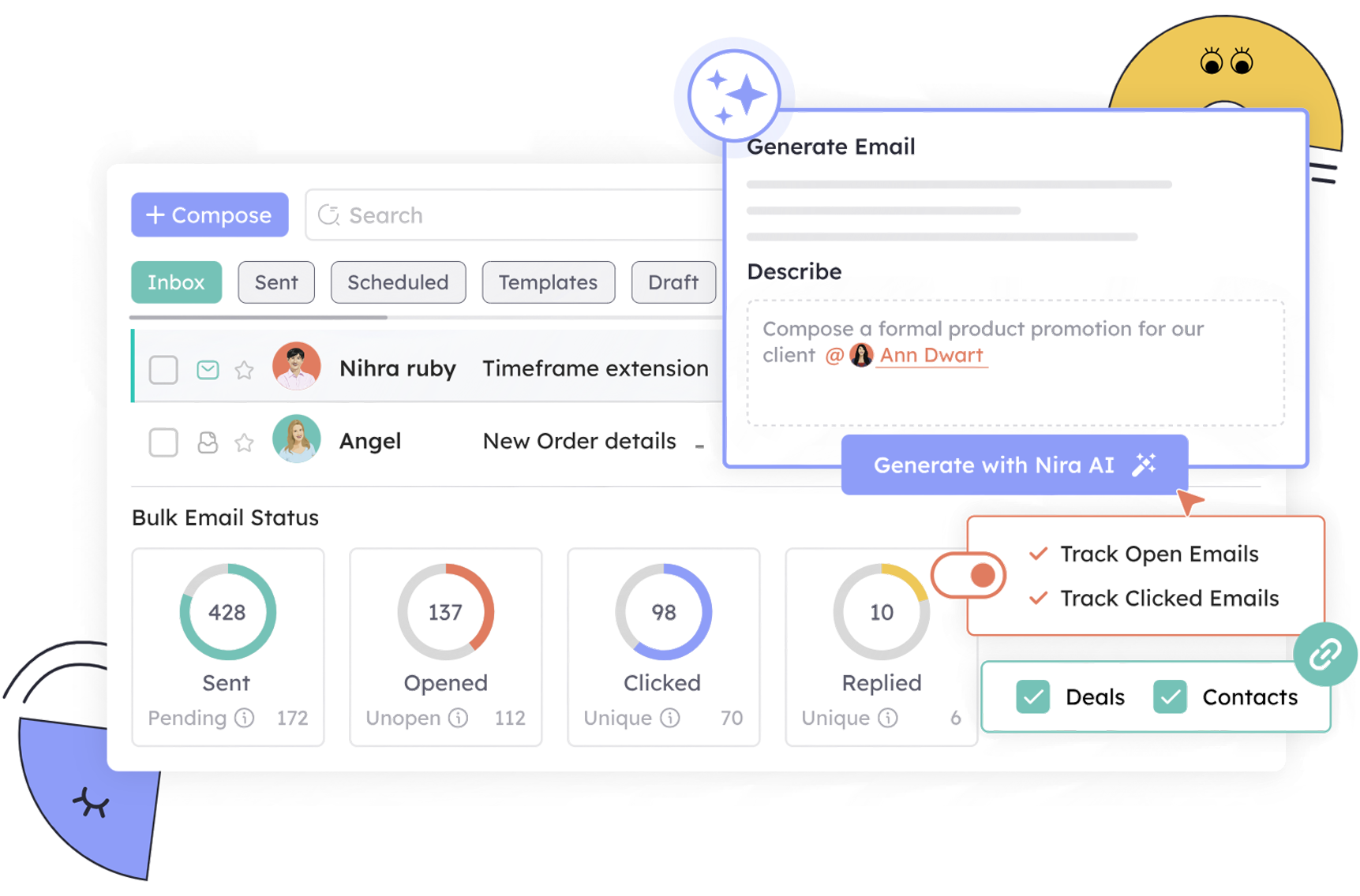 Nira, our built-in AI, automates routine tasks, drafts follow-ups, summarizes conversations, and suggests next steps, helping your team focus on closing deals faster using the best CRM software in India.