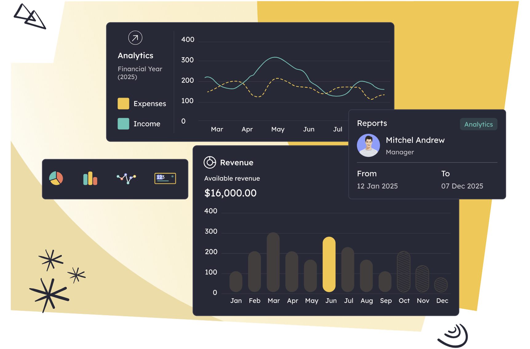 Track deals, activities, and outcomes at a glance with clean, easy-to-read dashboards.